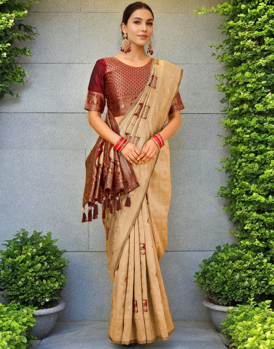 Beige Color Silk Weaving Work Paithani Designer Saree
