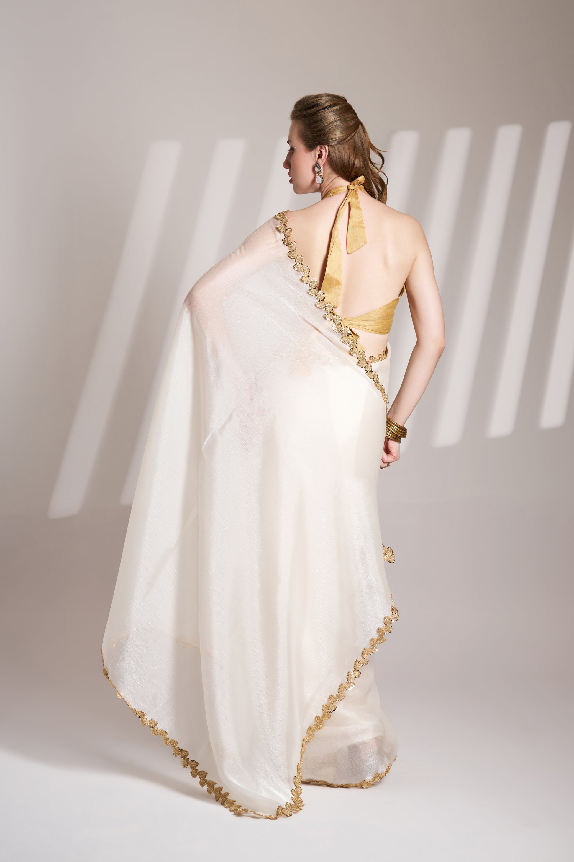 Elegant Off White Burberry Organza Saree with Designer Lace – Party Wear