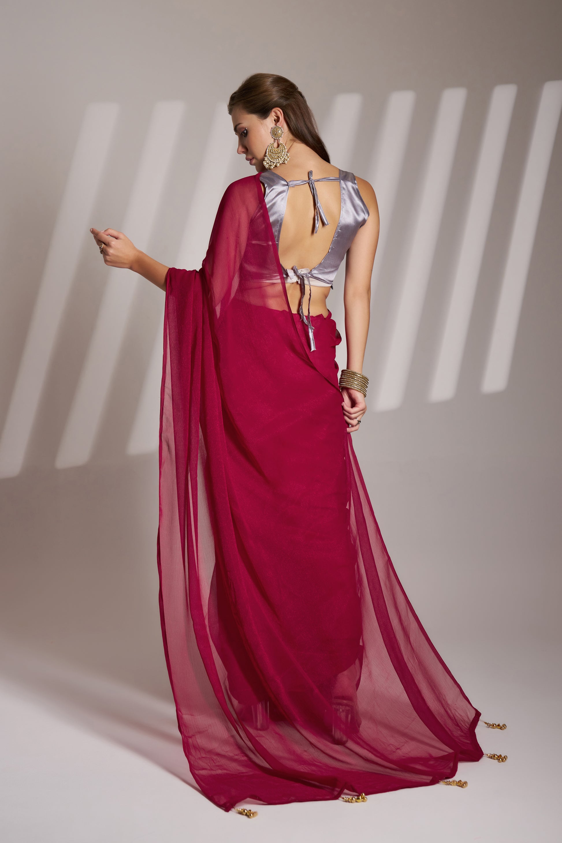 Hot Pink Shimmer Party Wear Saree with Fancy Tassels & Designer Blouse