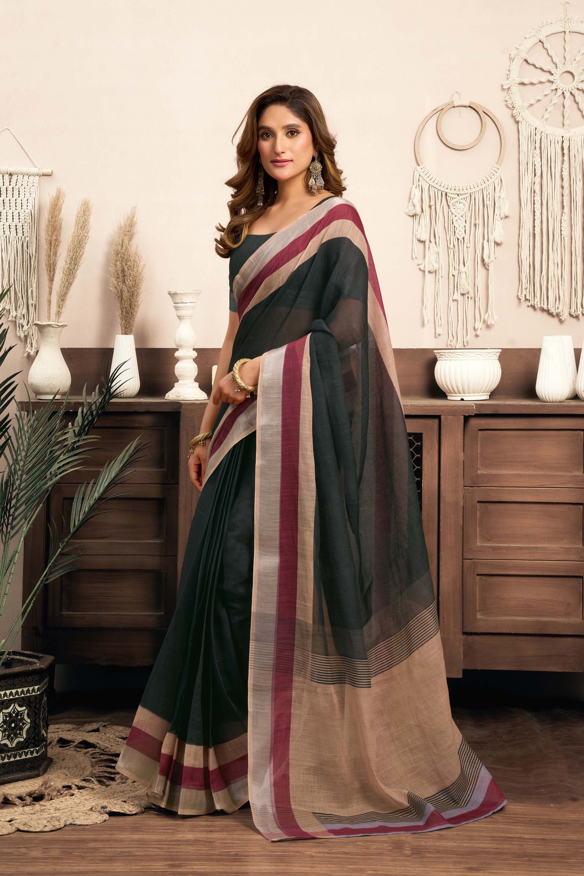 Ready-to-Wear Saree – Black Linen with Pocket | Vastraan