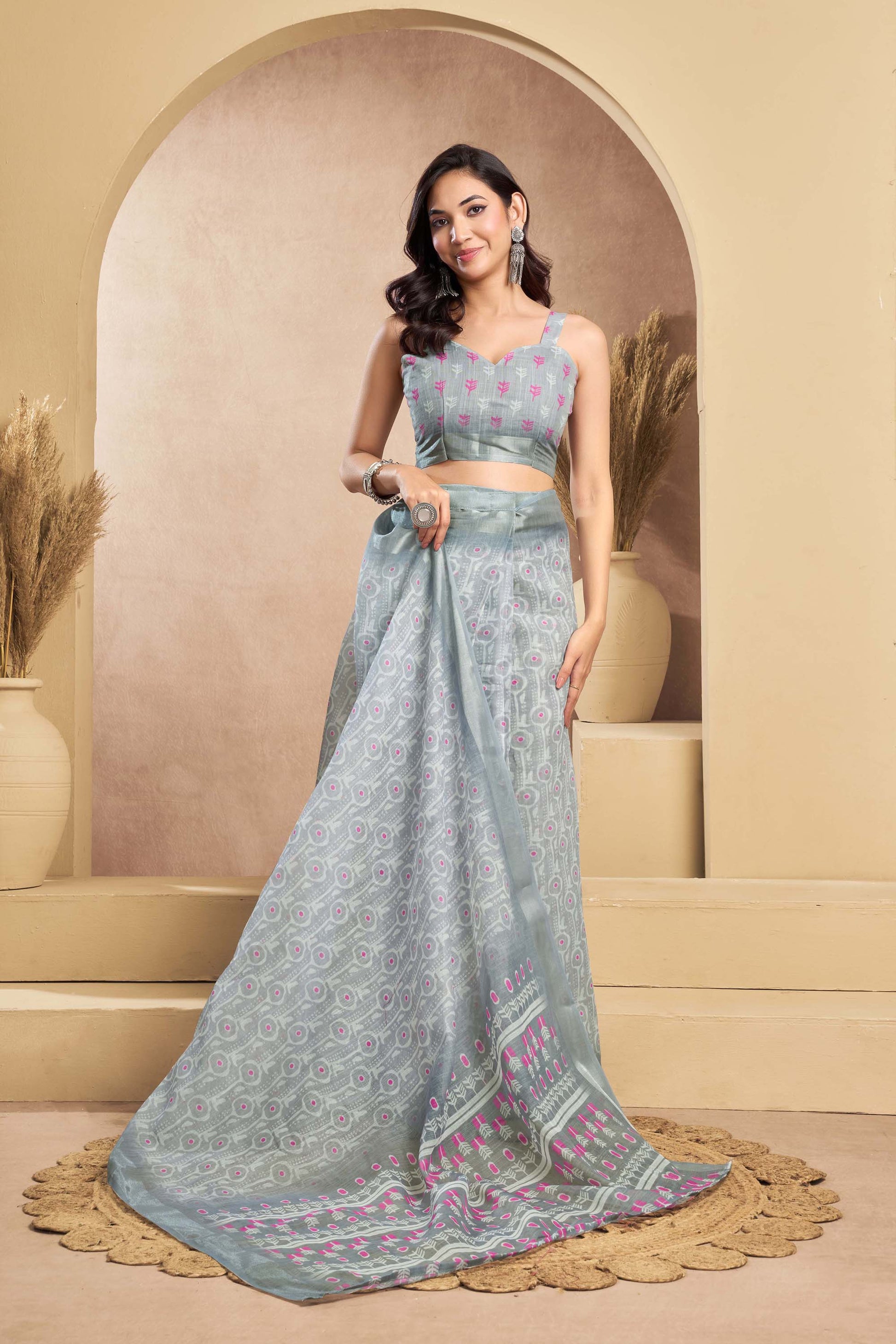 Ready-to-Wear Saree – Grey Linen with Pocket | Vastraan