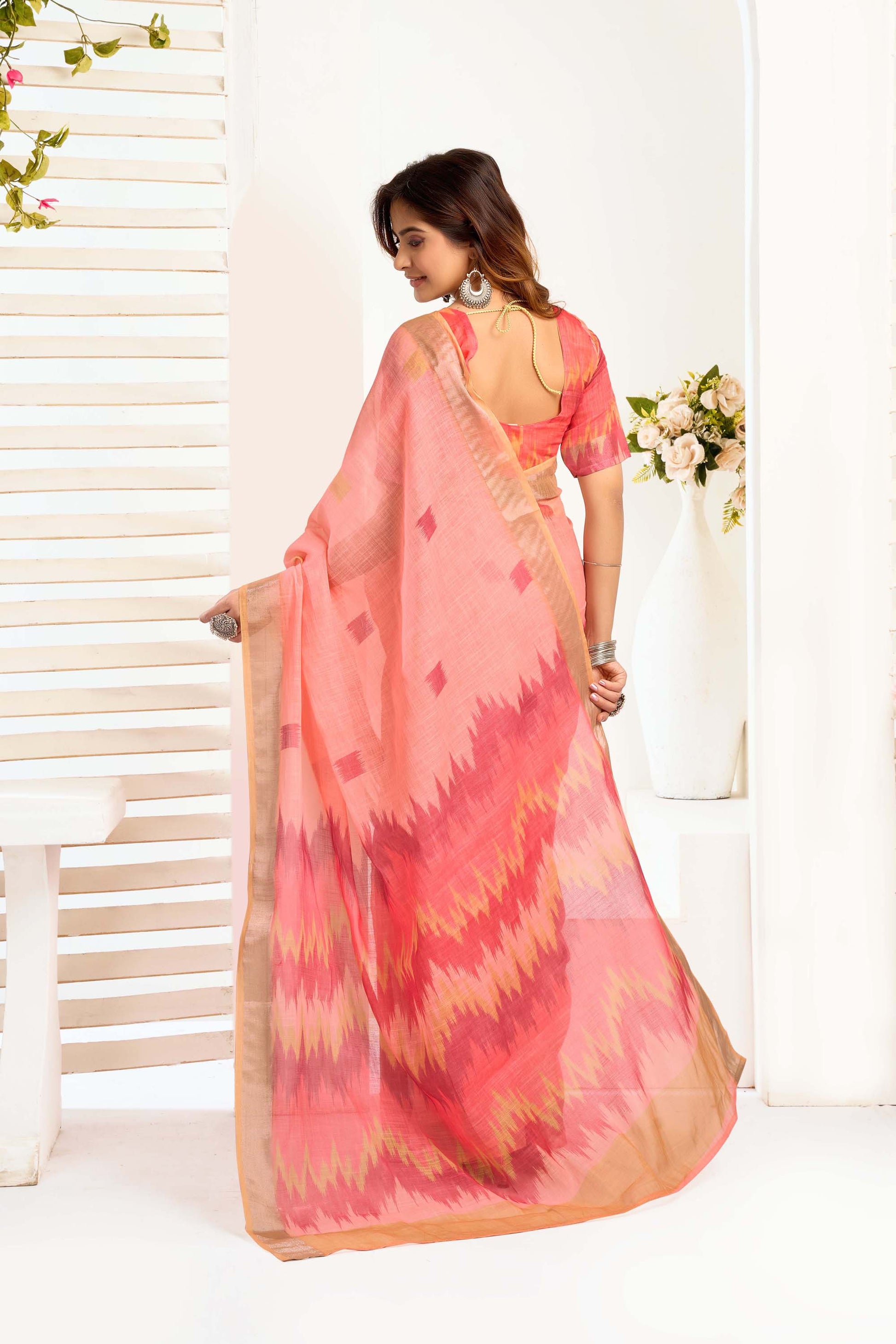 Ready-to-Wear Saree – Peach Linen with Pocket | Vastraan